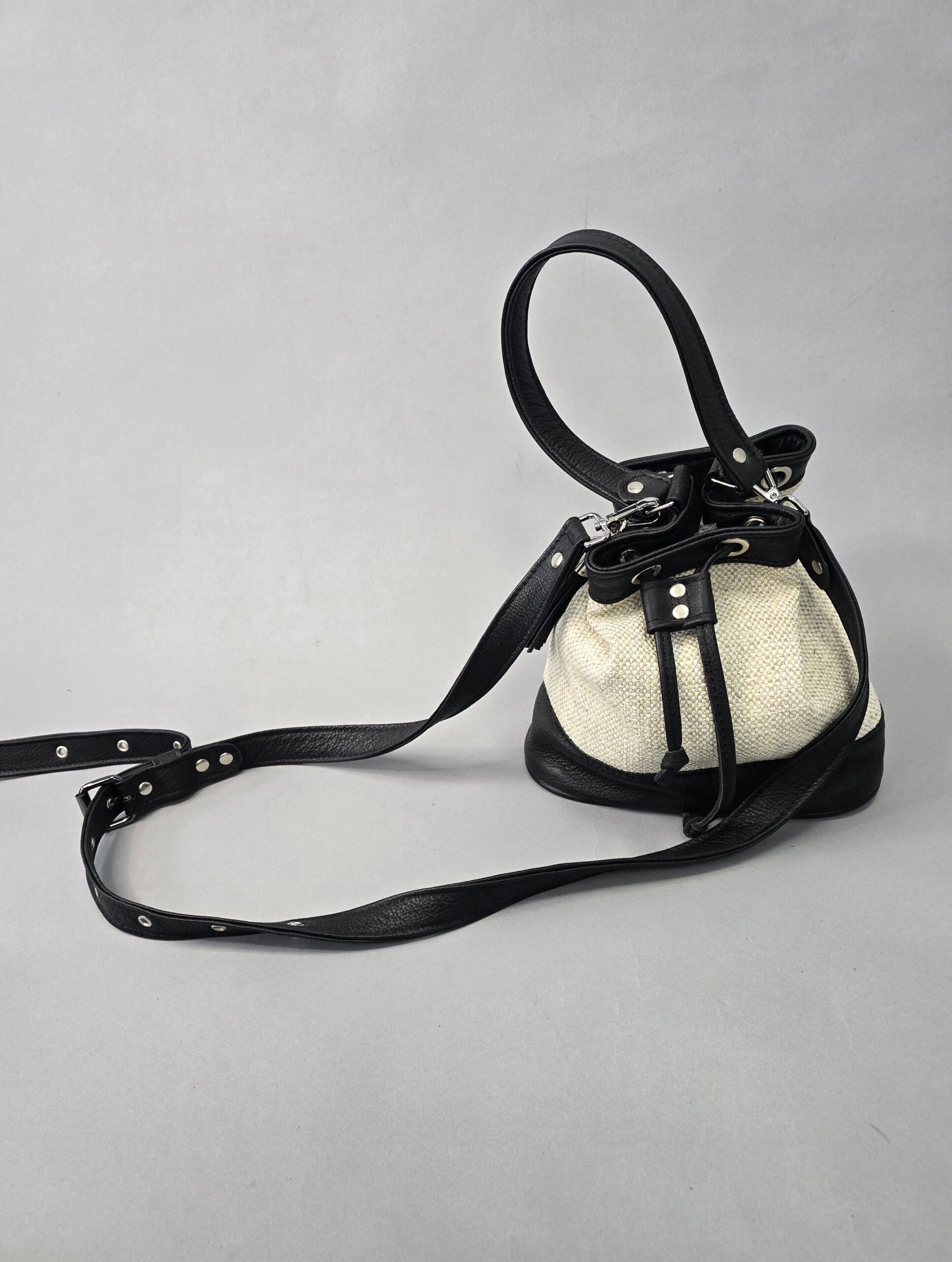 Ši rankų darbo moteriška rankinė sujungia natūralios odos prabangą ir audinio lengvumą, sukurdama nepriekaištingą stiliaus ir praktiškumo derinį. Kiekviena detalė kruopščiai apgalvota, kad užtikrintų ilgaamžiškumą ir patogumą tiek kasdienai, tiek ypatingoms progoms.