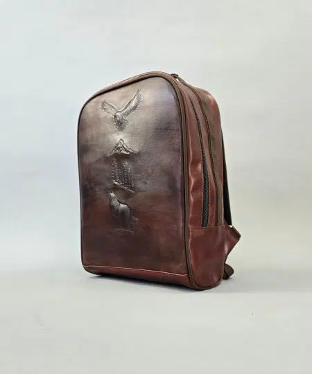Rankų darbo odinė kuprinė „Šventoji”, ruda